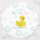 Illustration of a yellow rubber duck surrounded by bubbles with text, "Waddle it be? He or She?"