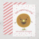 Illustration of a heart shaped waffle with face, arms and legs wearing shoes surrounded by confetti. Text says, "YOU'RE A WAFFLEY GOOD FRIEND" Opposite side is faded red stripe pattern