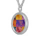 I chose gold plated so that the metal would not react with my skin oils and perspiration. But, I changed the necklace from the gold plated one to a sterling silver. My skin cells will tarnish the silver. But it will not look as bad if some portion of the gold plated necklace somehow became compromised. Zazzle did a find job turning the picture into a pendant for me. As you can see, the colors and the printing of the final product, match the preview. The picture I took is not very clear. But I am pleased with the product I received.