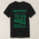 My 11 yo wore adult XL (5’7” 165#). The 8yo is small framed. She wore adult small and tied it in the back. Grandma wore adult large with long sleeve shirt underneath. Tall girl adult medium. Dark haired male adult large. Good quality dark Heather gray, Gildan brand shirt. -it was next up from basic choice and cost about $20 per shirt. Not too thick or thin. Washed and dried well, no major shrinkage. Not see-through. Can wear a bra under it fine. Screen print is just as shown and well done, front and back.