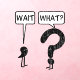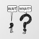 Wait, What. Illustration of a comma and a question mark. Funny idiom exclaimed when someone suddenly realizes something isn't right. The comma waits, the question mark asks. Get it?
