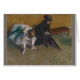 Edgar Degas (Hilaire-Germain-Edgar Degas, 1834 - 1917) was a French painter, draftsman, sculptor, printmaker, a founder of the school of Impressionism, and a classical painter of dancers and scenes from modern life. Degas began to paint early in life, and after meeting the French classicist J.A.D. Ingres, Degas studied drawing in the manner of Ingres at the Ecole des Beaux-Arts under Louis Lamothe. Degas lived for 3 years in Italy, where he made many copies after Michelangelo and the masters of the Italian Renaissance. Establishing his Paris studio, the artist exhibited as a history painter but began to turn to subject matter from contemporary life, under the influence of his friend Edouard Manet. Disenfranchised from the official Paris Salon, Degas joined ranks with the independent Impressionist group and exhibited at their first show in 1874, though his classical approach, lack of spontaneity, and disdain of plein-air easel painting left him little in common with much of the group. Degas painted many portraits with profound psychological insight, many scenes from contemporary life and genre paintings, and devoted half of his life's work to colorful pictures of ballet dancers and classical female figures. Degas' bold experiments in color which crossed boundaries between Realism, Impressionism, and Modern painting, his original compositional methods, and his painstaking, calculated classical drawing combined with the artist's cantankerous rejection of rigid rules, combined to create one of the most original and beloved body of works in the history of art.