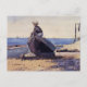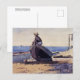 A fine art postcard with the watercolor painting, Waiting for Dad, also known as Longing (1873), by Winslow Homer (1836-1910), an American artist. An ocean landscape with a young boy sitting on rowboat by the shoreline on a sandy beach.