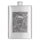 The product is a good size and came exactly as it was pictured. The lid is not attached to the flask, which could be dangerous on drunken nights... The print came out surprisingly well and looks very sharp. Would definitely recommend.