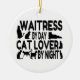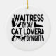 This adorable text design featuring the phrase "Waitress by Day Cat Lover by Night" and cute cat profiles is perfect for any waitress who loves cats.