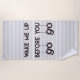 NewParkLane - Beach Towel, with funny quote 'Wake me up before you go go', lyrics from the Wham song, in a fun, modern typography with hanging letters, in black. Against a soft grey and white background.