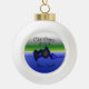 Blue and green wakeboarding ceramic ball Chistmas ornament. Customize with your own name and choice of year. Choose from three different back designs.