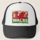 Stylized version of the flag of Wales features the Red Dragon on a brick wall background