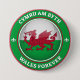 A patriotic design featuring a rounded 3D Welsh flag inset into an outer ring colored in Welsh colors. The top text is of Celtic origin and translates as Wales Forever. The bottom text is the English meaning of the top text.