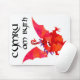 A white mousepad with a red dragon from a handpainted paper collage design, with the slogan 'Cymru am Byth' in black lettering