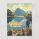A captivating and nostalgic depiction of hiking in Wales, renowned for its rugged landscapes and scenic beauty. The design captures the dramatic mountains of Snowdonia, lush green valleys, and scenic coastal paths. Rendered in a vintage style, the artwork evokes the adventurous spirit and serene beauty of hiking in Wales, inviting viewers to experience its natural splendor and outdoor charm.