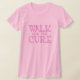 The material is a great quality that is hard to find with most tee shirts. Fabric was not see-through or thin at all, but was also very soft and comfortable. The shirt description states that it runs a little small, so I sized up one size for a perfect fit! I would definitely buy this type of tee shirt again because I love the fit and high quality fabric that I cannot find anywhere else. The printing was perfect and just as pictured. Loved the cute quote and really enjoy the tee in both the quality and design. I love quirky typography designs and funny quotes and I am extremely pleased with the overall quality and value I get at Zazzle!