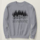 Walk in the Wood, light grey sweatshirt. Black forest graphic with quote.