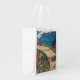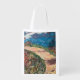 I own a lot of reusable grocery bags, but this one holds its box shape and simply stands up on its own even if there is nothing in it. Its stiffer than your regular reusable bag too, and the material is water resistant. I poured water on the exterior and it didn't penetrate inside to the other side. I'm buying a couple more. Wish I knew how durable these bags were or I would have purchased a few more with my initial order. I also like how it folds and buttons up when not in use, making it easy to put into a handbag or luggage. I haven't used this bag yet, as I purchased it for travel use, like when you're at the airport and need to small sturdy bag to place any airport purchases in, like food, souvenirs etc. I can tell you when you first see this bag, it looks very cheap, but after closer inspection of the material and the seams its a very sturdy reusable bag. I tested it out by putting some really heavy objects inside and I could not observe any stress to the bag at all. Another thing I like about it, is the fact the medium size that this is makes it easy to just carry it in your hand without the bottom of the bag scraping the ground, like most other bags do when you're short. That alone, deserves 5 stars. I just wish there were more colors to choose from! The PDX Airport Carpet printing looks just like the photo, and using this bag during travel might be a conversation piece when/if a native from Oregon happens to see it.