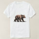A stylized illustration of a brown bear walking, depicted in profile against a solid black background. The bear is rendered with detailed fur and shading.