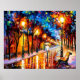 The colors are so vivid. The quiet, rainy mood is captured beautify. Beautiful. The colors were not dulled when printing on canvas. Exceptional.