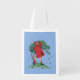 I own a lot of reusable grocery bags, but this one holds its box shape and simply stands up on its own even if there is nothing in it. Its stiffer than your regular reusable bag too, and the material is water resistant. I poured water on the exterior and it didn't penetrate inside to the other side. I'm buying a couple more. Wish I knew how durable these bags were or I would have purchased a few more with my initial order. I also like how it folds and buttons up when not in use, making it easy to put into a handbag or luggage. I haven't used this bag yet, as I purchased it for travel use, like when you're at the airport and need to small sturdy bag to place any airport purchases in, like food, souvenirs etc. I can tell you when you first see this bag, it looks very cheap, but after closer inspection of the material and the seams its a very sturdy reusable bag. I tested it out by putting some really heavy objects inside and I could not observe any stress to the bag at all. Another thing I like about it, is the fact the medium size that this is makes it easy to just carry it in your hand without the bottom of the bag scraping the ground, like most other bags do when you're short. That alone, deserves 5 stars. I just wish there were more colors to choose from! The PDX Airport Carpet printing looks just like the photo, and using this bag during travel might be a conversation piece when/if a native from Oregon happens to see it.