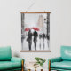 Great looking tapestry, with a watercolor print of a rainy street, with a couple walking with red umbrellas.
