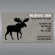 A wild walking moose magnetic business card, ideal for outdoor adventure companies, camps, wilderness guides, forest rangers, and conservationists. Black moose silhouette on faux wood grain background.