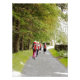 After a long hike up in the hills on a very warm day, these walkers head for home. An art design.