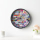 The size of the clock is dramatic and the abstract alcohol ink design is soothing and intricate at the same time. I chose the black frame that adds pop to the blue and gold design. The gold printing would be better in a slightly darker or larger font. I love it and I’m looking for just the right place in ny new apartment. I would recommend this clock for a personal gift or a present. I feel that the quality is excellent for the money! I’m a bit of a clock nut so I’m pretty particular about my purchases. The clock is larger in diameter than many if the clocks I have, so it stands out very well. I think a slightly darker printing color and a moderately larger size would best suit a professional decor or add more impact in a work place item.
