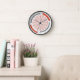 This unique, high-quality wall clock is vibrantly printed, protected by a high-impact plexiglass crystal face and features a pre-installed backside hanging slot for easy hanging and a non-ticking design.