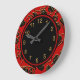 Wall Clock Black Red Gold Trim Damask Floral