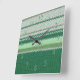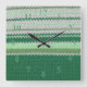 Green striped pattern of single crochet stitch. Larger stripe is dark green, then a light green with a gray-green, interspersed with white. Numerals are dark green in light green.