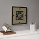 This Dramatic Wall Clock has sepia toned medallions on Black. Shades of black, cream and tan dominate. This small but intense design is just the thing to adorn a small stretch of wall. Place it at eye level where a guest might wait to enter. You will find that this art demands to be stared at and examined closely. The design is reminiscent of a Persian rug. The Medallions images come from an actual handmade tile by Oregon tile maker Fay Jones Day.