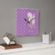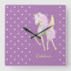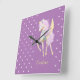 Wall clock with a cute image of a unicorn on a pink - lilac background.