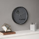 The size of the clock is dramatic and the abstract alcohol ink design is soothing and intricate at the same time. I chose the black frame that adds pop to the blue and gold design. The gold printing would be better in a slightly darker or larger font. I love it and I’m looking for just the right place in ny new apartment. I would recommend this clock for a personal gift or a present. I feel that the quality is excellent for the money! I’m a bit of a clock nut so I’m pretty particular about my purchases. The clock is larger in diameter than many if the clocks I have, so it stands out very well. I think a slightly darker printing color and a moderately larger size would best suit a professional decor or add more impact in a work place item.