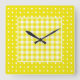 Wall Clock, Yellow Check Gingham and Polka Dots Square Wall Clock