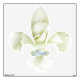 The symbol of royalty, this Fleur di Lis shaped wall decal is formed of a beautiful white gardenia. The word "Bride" written on in blue colored fancy script, which you can change to your color choice.