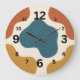 Get groovy with this Retro Abstract Organic wall clock! This funky, artistic design features large, fluid "blob" shapes in a curated Mid-Century Modern palette of deep teal, terracotta rust, and mustard yellow on a cream background.