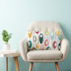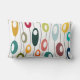 This lumbar pillow has a mid-century modern design of ovals in retro colors on curvy black lines.