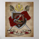 Wallace clan badge with torn tartan, basket hilt crossed swords and a medieval shield on a castle wall! Featuring a crowned golden thistle and the clan motto! Hang this poster print on your wall and have that "feeling" of being in a castle! Ready to fight for your clan! Proud to be Scottish!