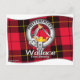 Wallace Clan Tartan, Crest Badge and Motto on a wide variety of products. The belt and buckle indicates the wearer is a member of the clan symbolized by the chief's crest and motto within the belt. The belt encircling the crest replaces the Gaelic phrase "an cirean ceann cinneadh" (crest of the clan chief). It is generally accepted that Clan Tartans date to the beginning of the 19th century. Wallace Clan Crest Issuant from a crest coronet of four (three visible) strawberry leaves Or, a dexter arm vambraced, the hand brandishing a sword all Proper The Wallace Clan Motto is chosen by the Clan Chief. "Pro libertate", For Liberty Clan Wallace Septs: Walla, Wallais, Wallace, Wallice, Wallang, Wallass, Wallayis, Wallays, Walleis, Wallensis, Walles, Walleyis, Walleys, Walli, Wallis Walls, Wallyis, Wallys,Walker, Walois,Walys, Waces, Wal’, Walace, Walais, Walans, Walas, Walays, Wale, Waleis, Walency, Walens, Walense, Walensen, Walensi, Walensis, Wales, Waless, Waleys, Waleyss, Valance, Valensis, Valeyns, Vallace, Vallance, Valles, Valleyis, Vallibus (Not Vallibus, Uallas, Gadhel, Galeis, Galeius, Gales, Galeys, Galleius, Grieve, Galleius, Galles, Galles, Gallia, Gallois, Gaul, Gweddol
