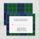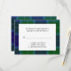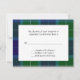 Lovely traditional Wallace tartan plaid wedding response RSVP card. A white text area lays in the middle of the lovely blue and green plaid pattern, with black text that is fully customizable to suit your needs.