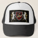 Here is a great lookin' trucker hat. Show off your Scottish pride wearing this Wallace clan badge and tartan shield with chained unicorn!