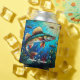 This fun modern has a colorful walleye pike swimming in a beautiful blue lake