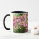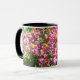 This white ringer mug with black handle and rim has a summery, sunshiny feel with 'Constant Cheer' wallflowers all around.