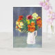 A Greeting Card of an Oil Pastel Painting of a vase of colorful wallflowers.