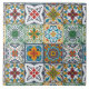 Hand-painted talavera inspired tiles in green, red, navy and yellow