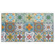 Hand-painted talavera inspired tiles in green, red, navy and yellow