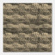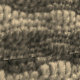 Ripple pattern in crochet, has a dark band near the center that is outlined with shades of tan stripes, a light stripe beneath, and medium shade at top and bottom. Color effect is created by filtering original image of green and white with a sepia filter.