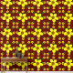 This wallpaper design features a playful and vibrant floral pattern. The design showcases large, cheerful yellow flowers with green leaves against a rich maroon background. Smaller yellow flowers are interspersed between the larger blooms, creating a dynamic and lively composition. The repeating pattern brings a sense of joy and energy to any space, making it ideal for creating a focal point in a room. This wallpaper is perfect for children's rooms, play areas, or any space that could benefit from a touch of fun and brightness.