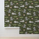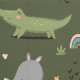 Wallpaper with a funny illustration of a cute crocodile, hippo, rhino.