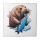 Walrus Fishing In The Sea Ceramic Tile
