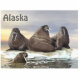 Three brother walruses, Wilson, Winston, Winthrop, rest on an ice floe, with the fourth brother, Wilbur, in the water. Text reading "Alaska" also appears.