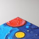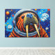 This artwork by Otis Porritt presents a striking portrait of a chimpanzee encased in a space helmet. Rendered with bold, impasto-like textures, the primate's face bursts with a kaleidoscope of vibrant hues, from deep blues and purples to fiery oranges and reds. The reflective visor frames its intense gaze, while the surrounding cosmos explodes with swirling nebulae and distant planets in a dynamic interplay of color and light. The rich, layered application of color creates a powerful, almost tactile visual experience, capturing a sense of wonder and exploration.